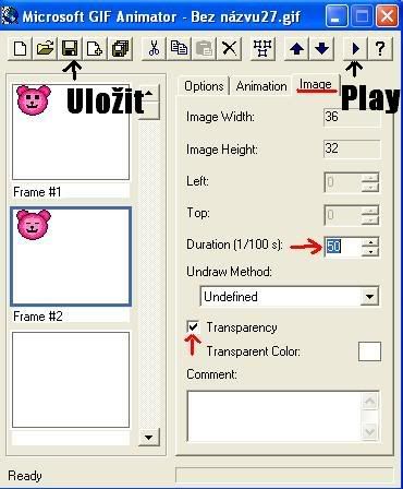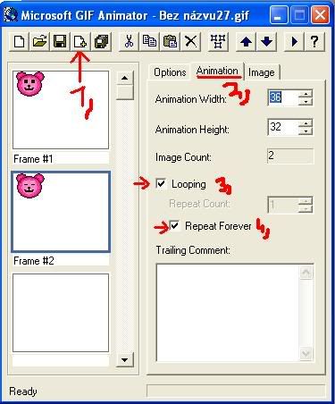 2)Otevřete si MS gif Animator a Postupujte takto: